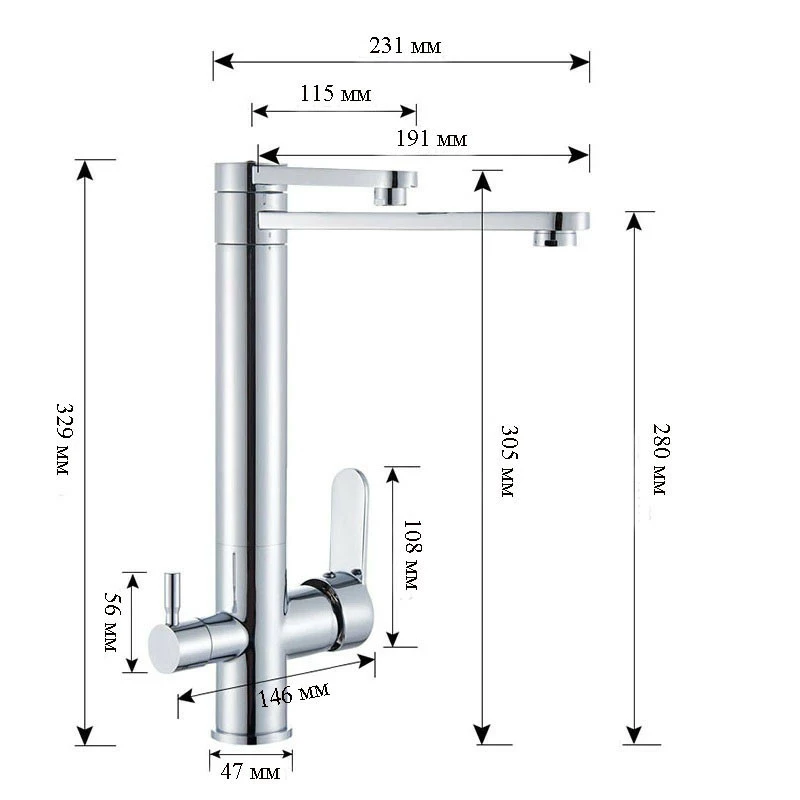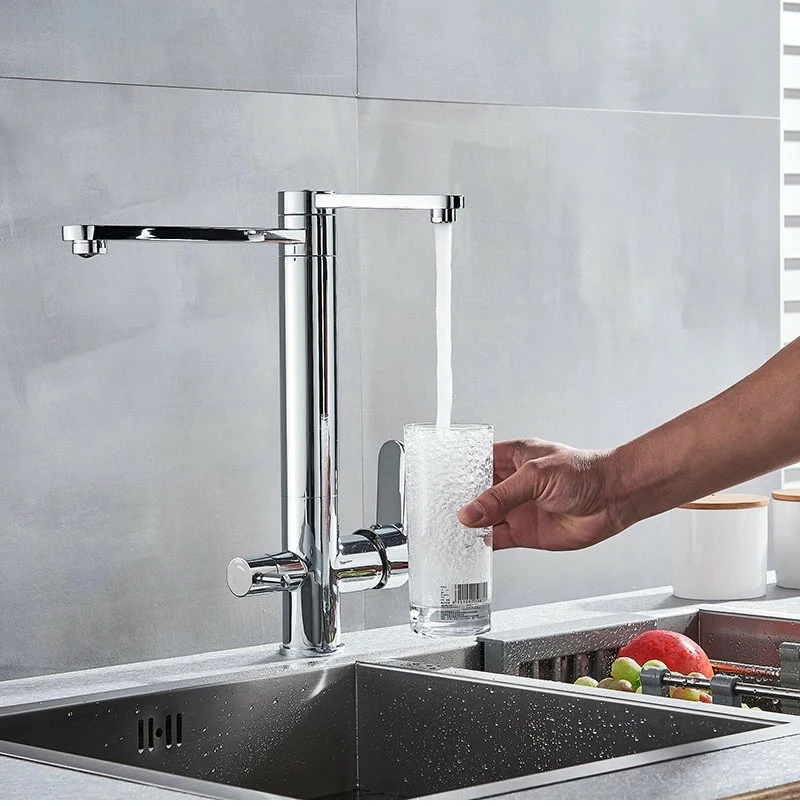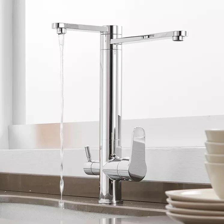Змішувач для кухні для фільтрованої води двоважільний, кухонний кран з подвійною ручкою WanFan Хром