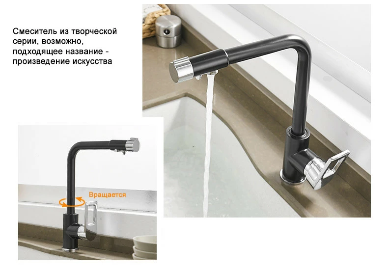 Змішувач для кухні WanFan, для гарячої і холодної води, 2 види подачі води, отвори для фільтрованої води