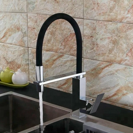Змішувач для кухні WanFan з висувним зливом, хромований, для гарячої і холодної води Чорний