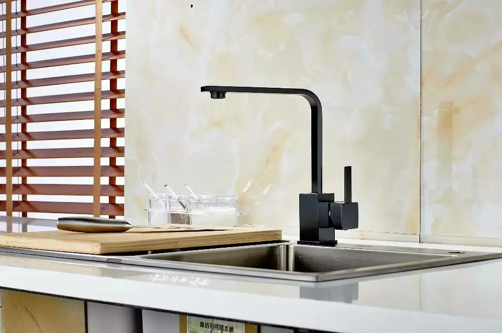 Змішувач для кухні з латунний, з нержавіючої сталі з бічним важелем, колір чорний