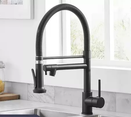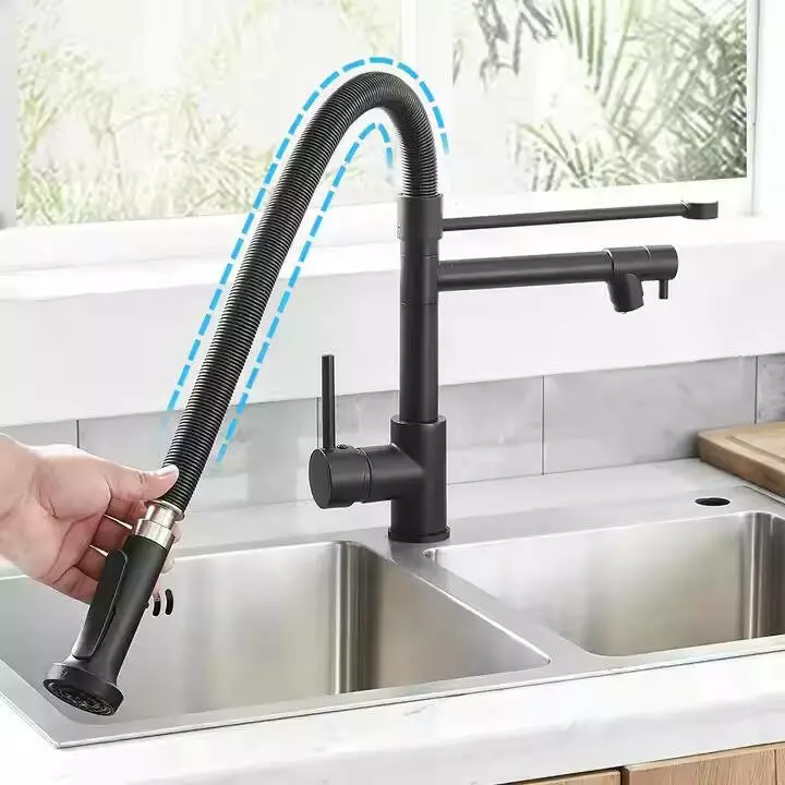 Змішувач для кухні з латунний з висувним і стаціонарним зливом з нержавіючої сталі, колір чорний