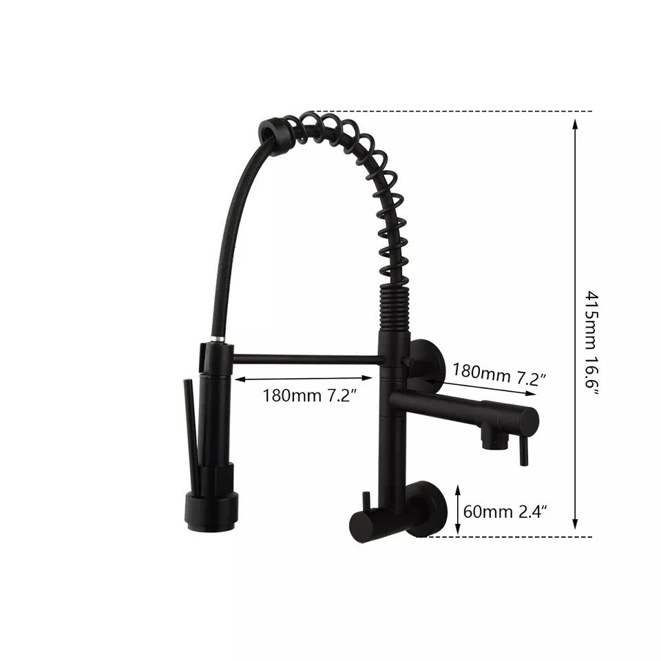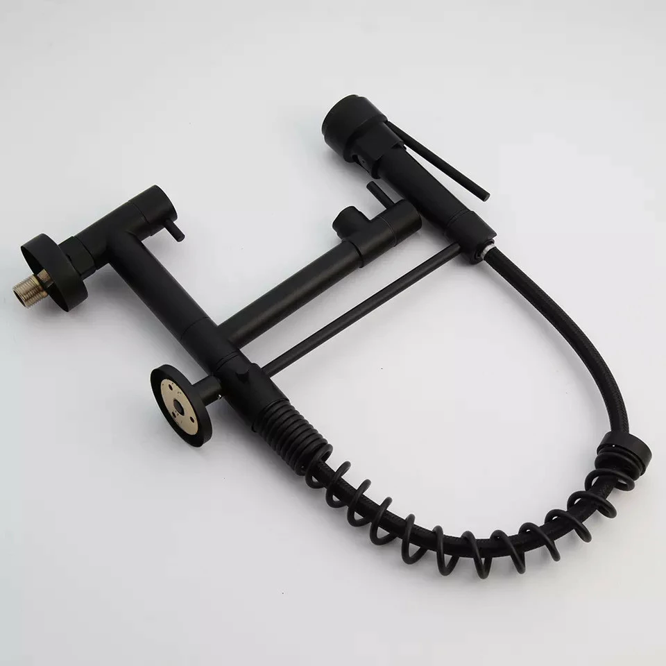 Змішувач для раковини на кухню, поворотний на 360 градусів, висувний, кран для настінного монтажу Чорний