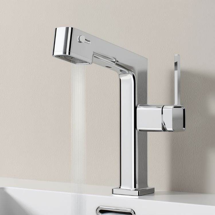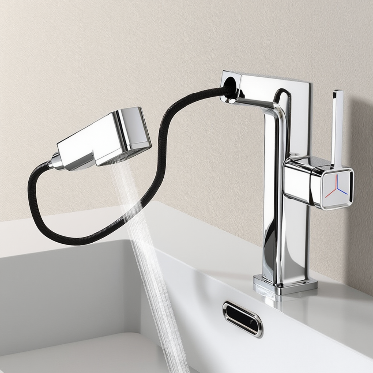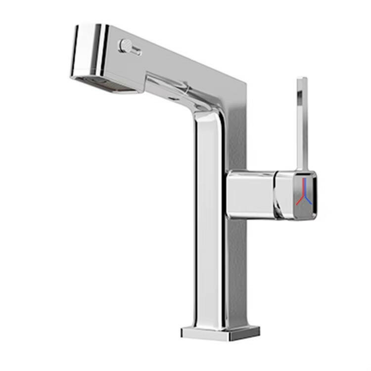 Змішувач для раковини у ванну кімнату та кухню, кран одноважільний, 3 режими та висувним виливом, хром