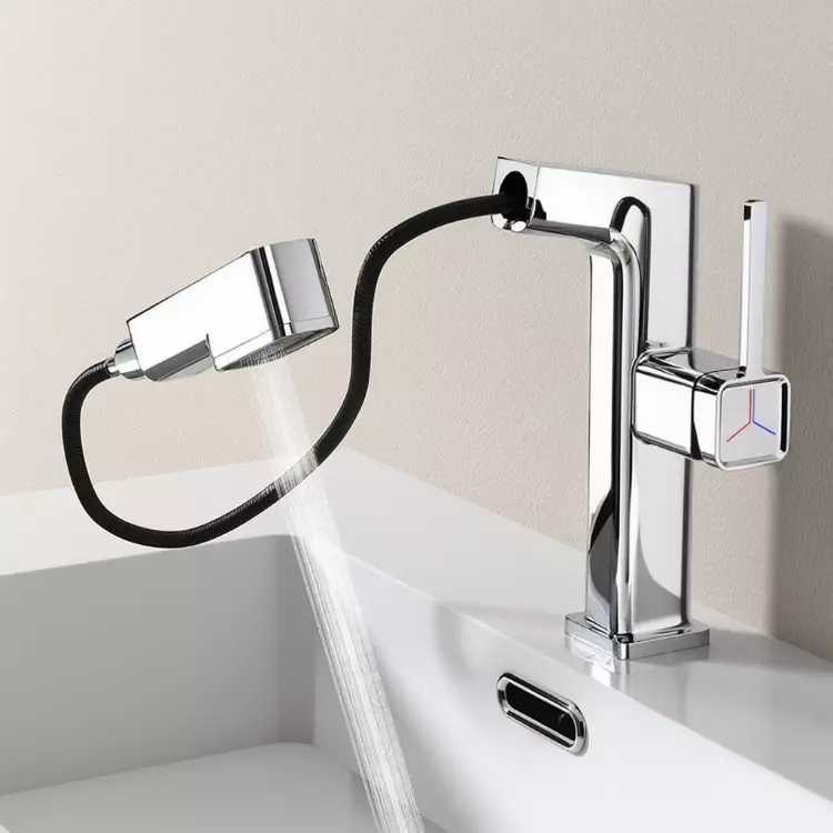 Змішувач оснащений висувним виливом на гнучкому шлангу, завдяки чому регулюється по довжині та висоті, значно розширюючи робочу зону. Це робить його зручним як для умивання, так і для миття посуду або наповнення ємностей.