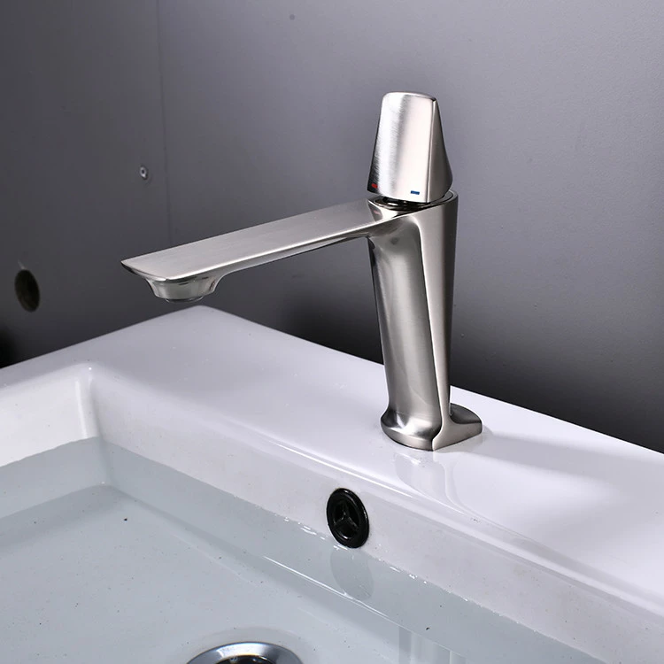 Змішувач для умивальника одноважільний кран для раковини у ванну кімнату горизонтальний монтаж WanFan Нікель
