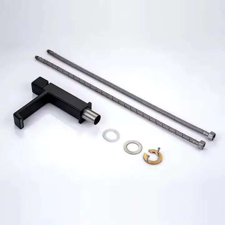 Змішувач для умивальника, раковини з латуні дизайнерський, одноважільний колір чорний