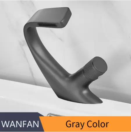 Змішувач для умивальника з латуні сірий з водоспадом дизайнерський, для раковини з 1 вентелем