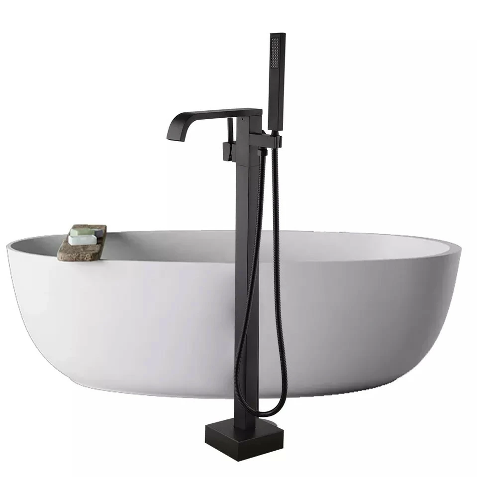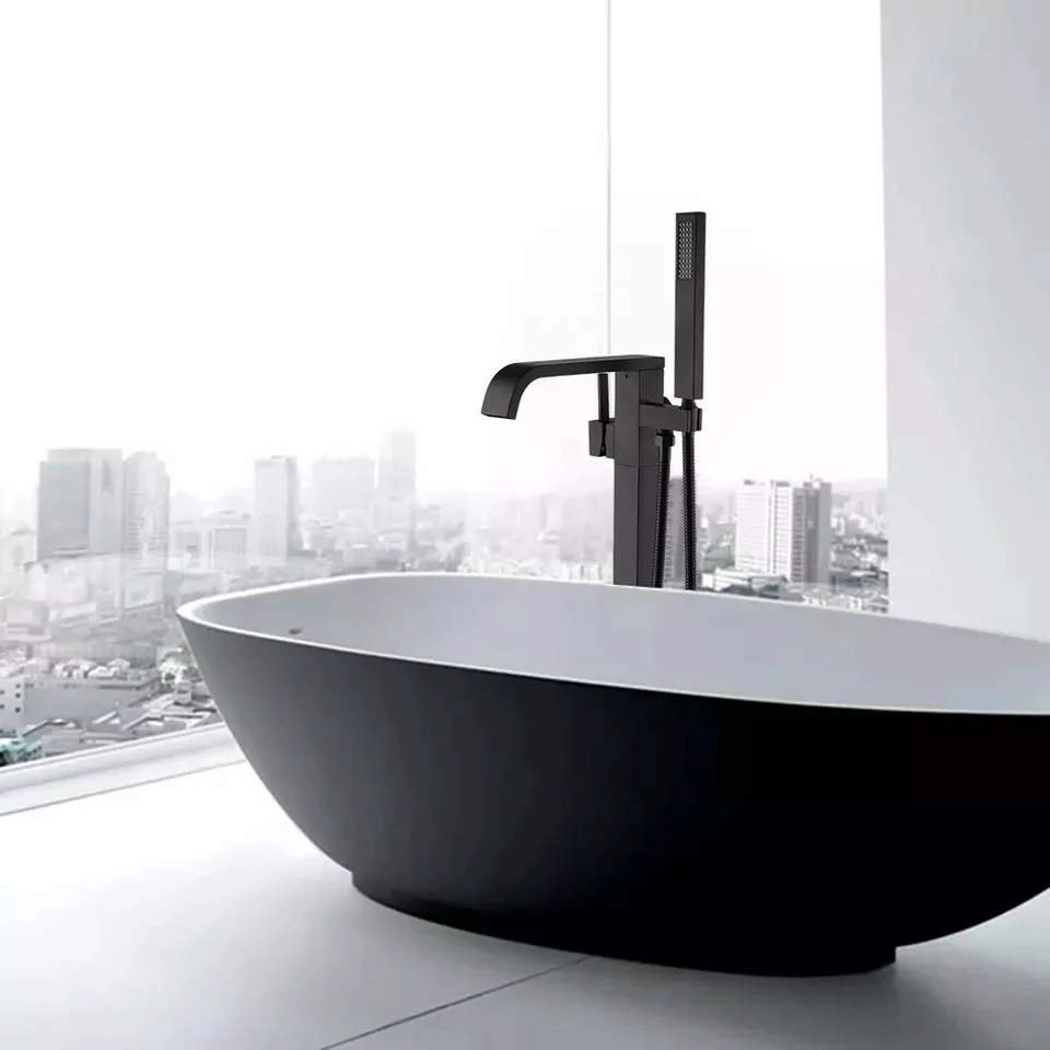 Змішувач для ванної підлоги, латунний матовий душовий гарнітур 2в1 кран і душова лійка Чорний