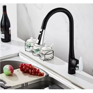 Змішувач кухонний висувний злив кран два режими води обертається на 360 градусів WanFan Чорний Хромований