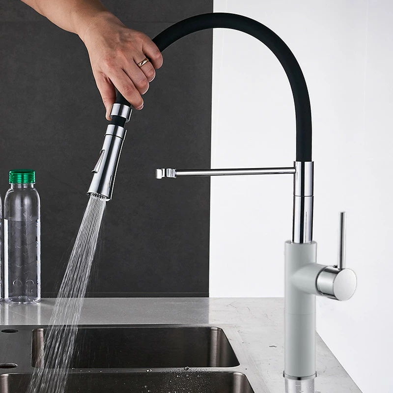 Змішувач для кухні з висувним виливом WanFan виготовлений з нержавіючої сталі. Завдяки хромуванню поверхні має оригінальний і стильний зовнішній вигляд. Він виконаний у лаконічному дизайні , який відмінно впишеться у будь-який інтер'єр.