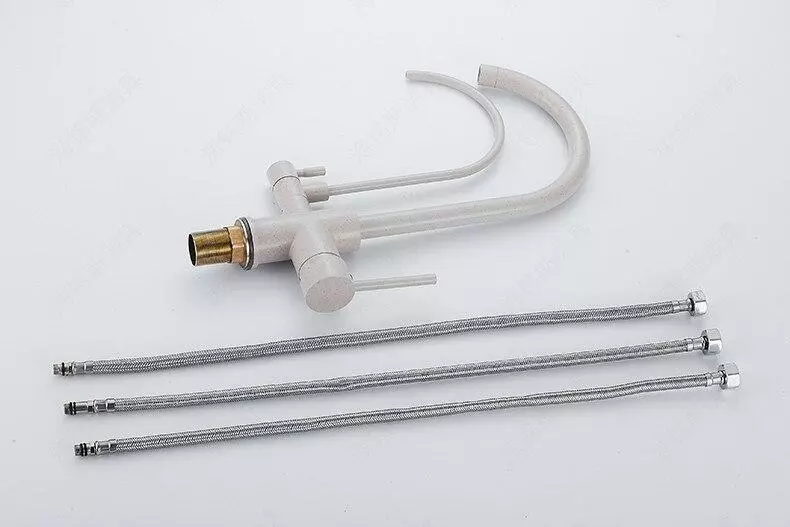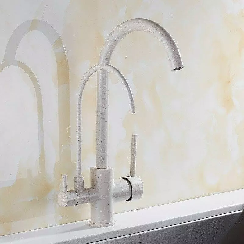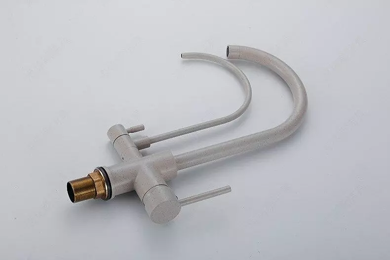Змішувач кухонний з підключенням до фільтра, двоважільний, кран для кухні латунний WanFan Бежевий