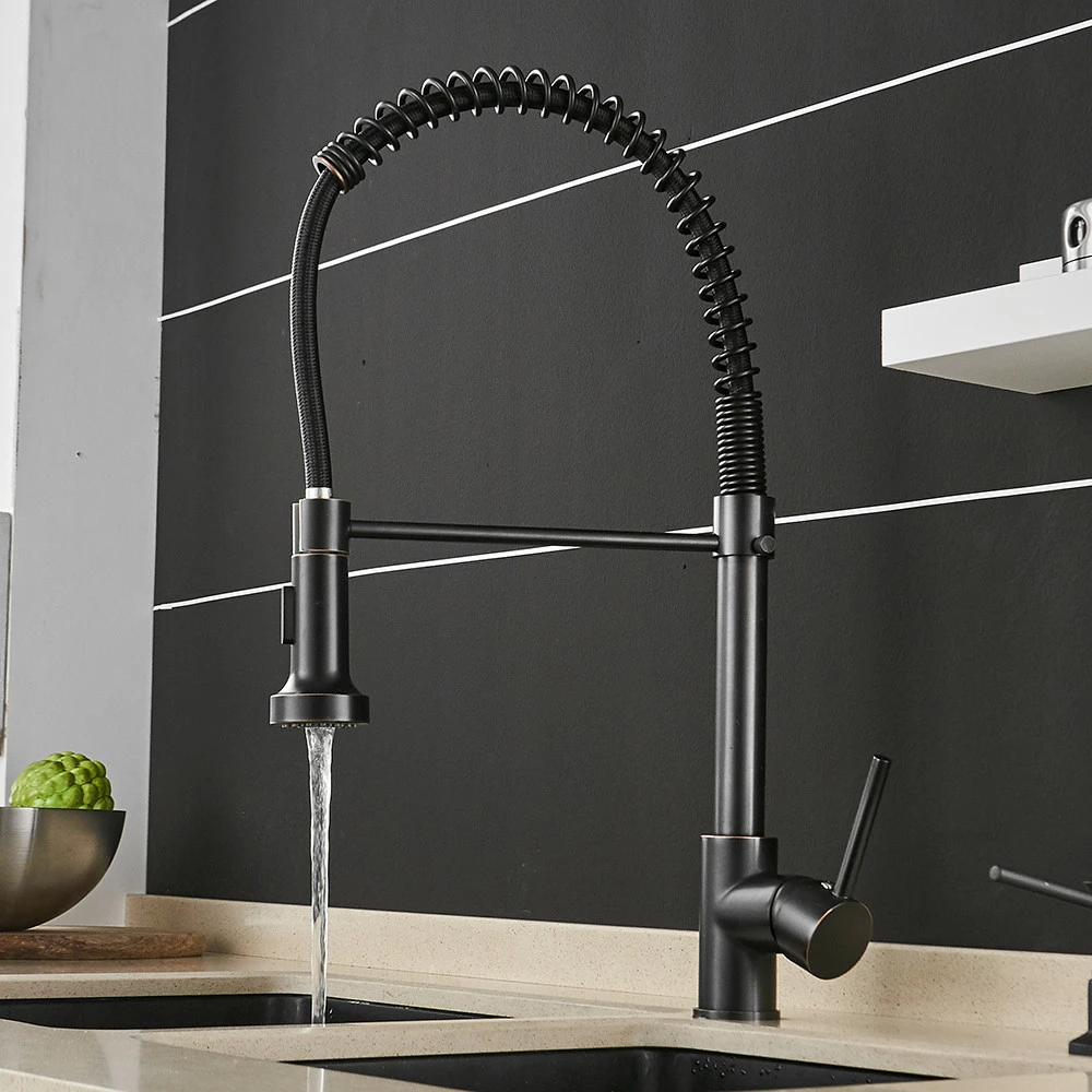 Змішувач кухонний з висувним зливом, два режими води WanFan, що обертається на 360 градусів, Чорний