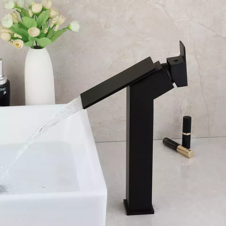 Змішувач матовий у ванну для умивальника, кран одноважільний з латуні для холодної та гарячої води Чорний