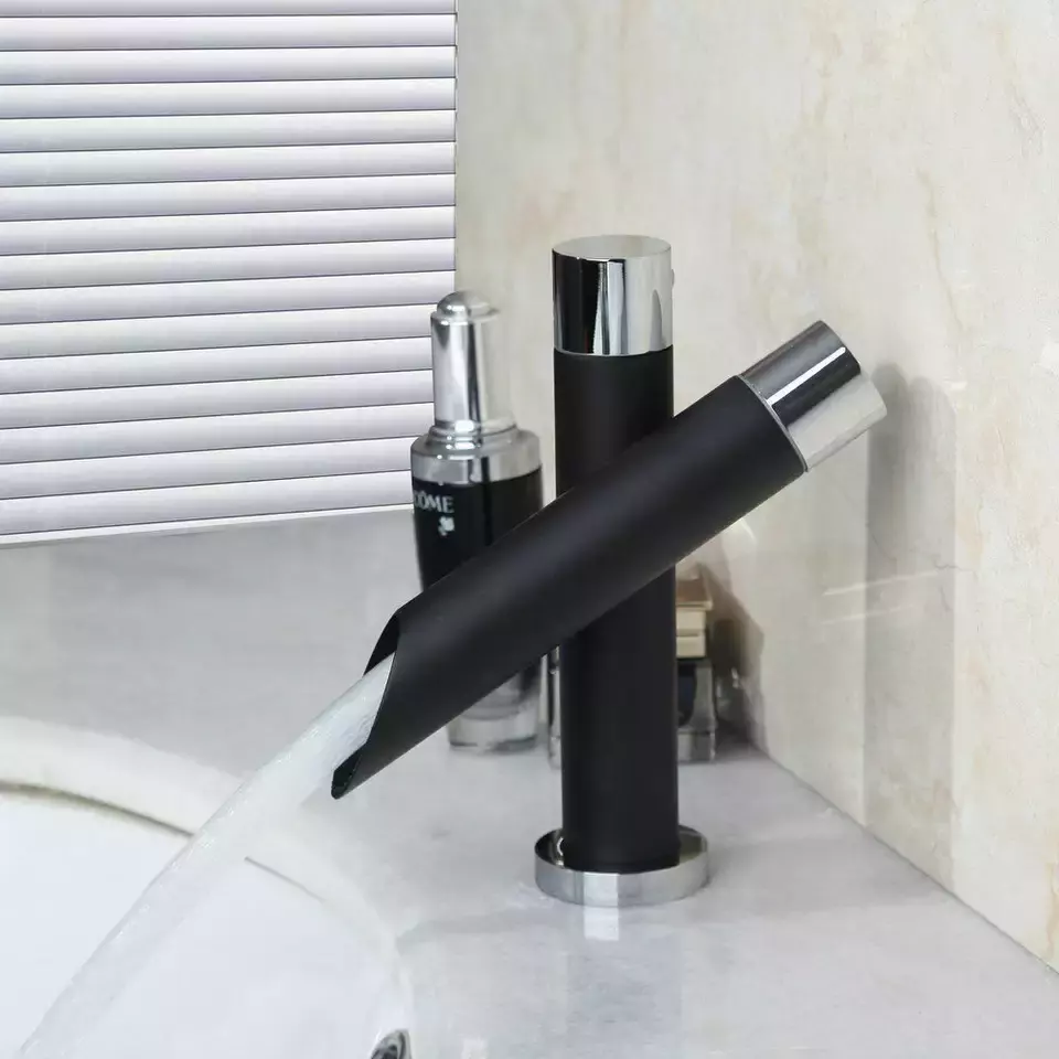 Змішувач якісний у ванну для умивальника, одноважільний з латуні для холодної та гарячої води Чорний