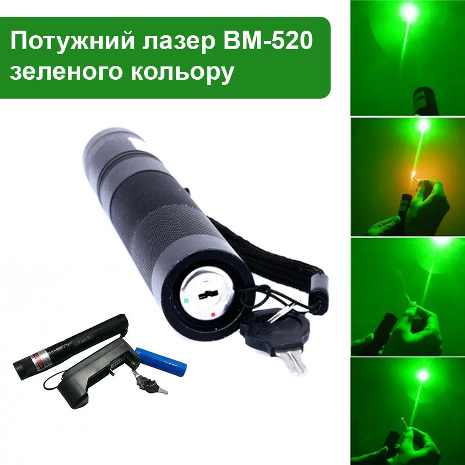 Аккумуляторный лазер зеленого цвета 1000 мВт Bigem BM-520 лазерная указка в металлическом корпусе