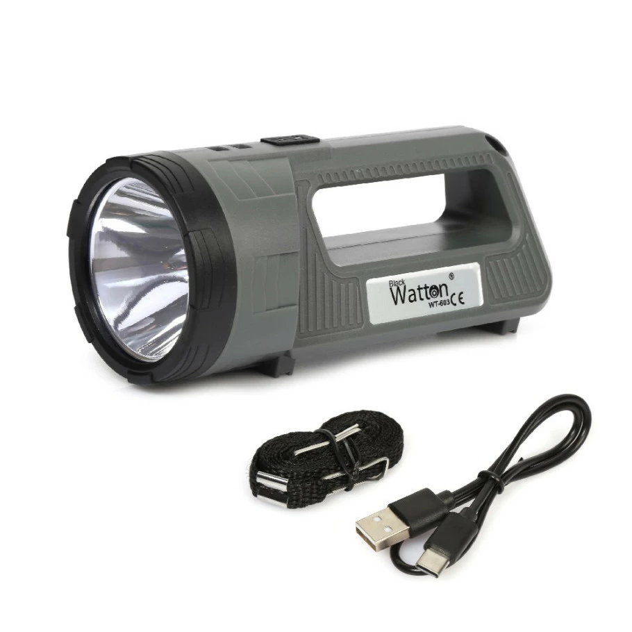 Аккумуляторный светодиодный фонарь-прожектор WATTON WT-603 фонарик с USB кабелем и с функцией PowerBank