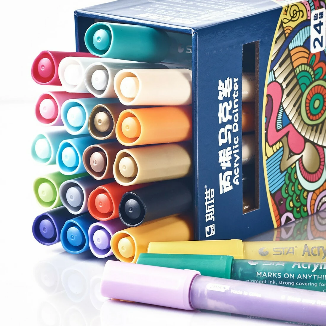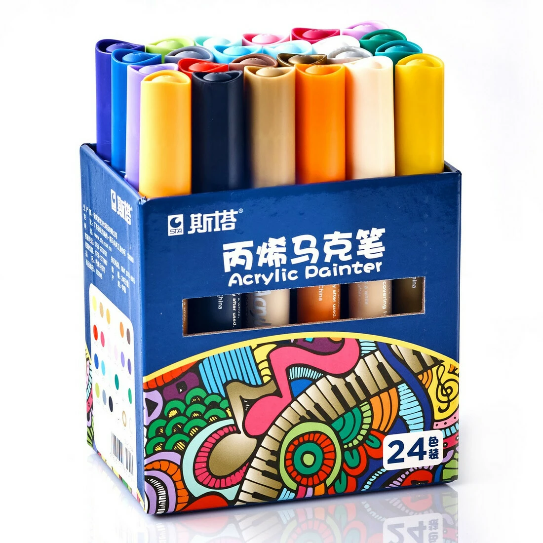 Акриловые маркеры для рисования 24 шт для посуды, холста, дерева, Набор цветных маркеров по ткани, стеклу