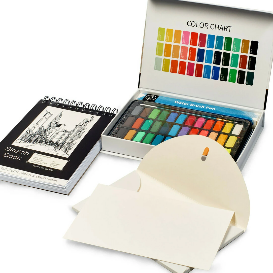 В набор входит : Набор для рисования акварельные краски с акварельной бумагой + скетчбук на 50 листов А5