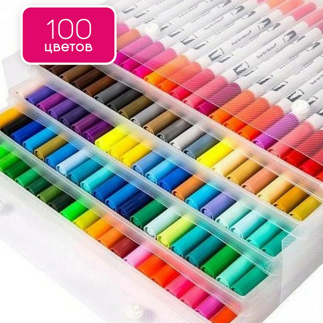 Набор акварельных маркеров Brush для скетчинга и рисования 100 цветов, маркеры акварельные двусторонние Brush