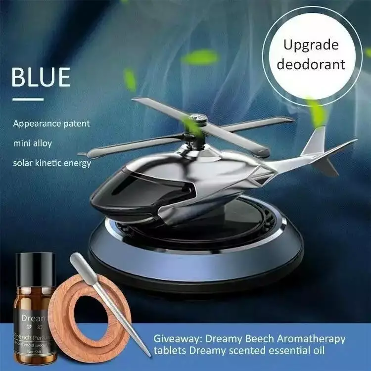 Ароматизатор в авто дифузор в форме вертолета на солнечной батарее,освежитель многоразовый синий