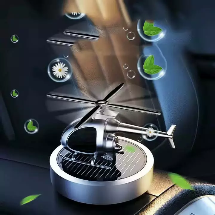 Оригинальный автомобильный ароматизатор "Вертолёт" — это стильное и функциональное решение для вашего авто. Его компактный дизайн и изысканный серебристый цвет придадут салону уникальный вид. Лопасти "вертолёта" начинают вращаться при попадании солнечных лучей, обеспечивая равномерное распространение приятного аромата "Морской бриз" по всему салону.