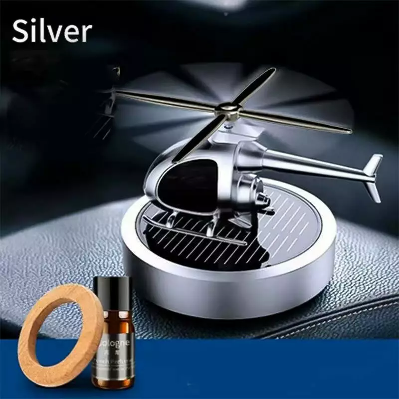 Ароматизатор в машину многоразовый дифузор "Вертолёт" на солнечной батарее,освежитель цвет серебристый