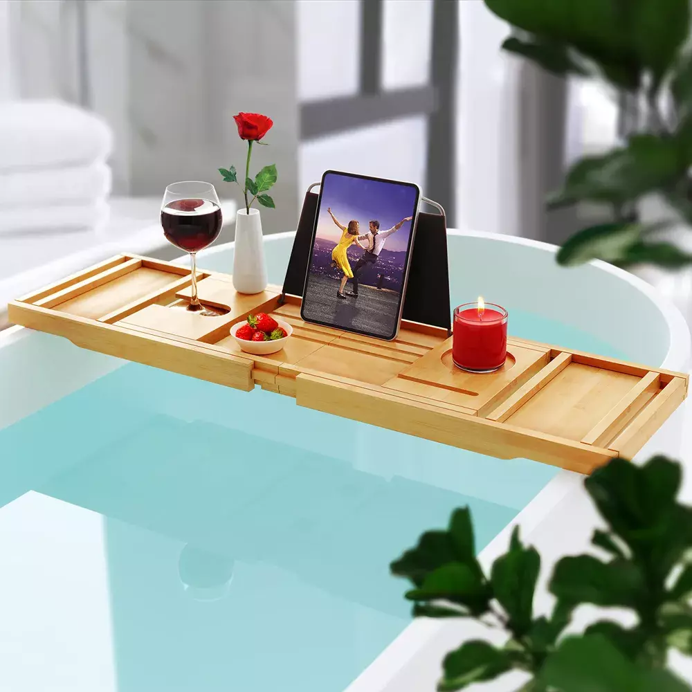 Бамбуковая выдвижная полка для ванны – это стильное и практичное