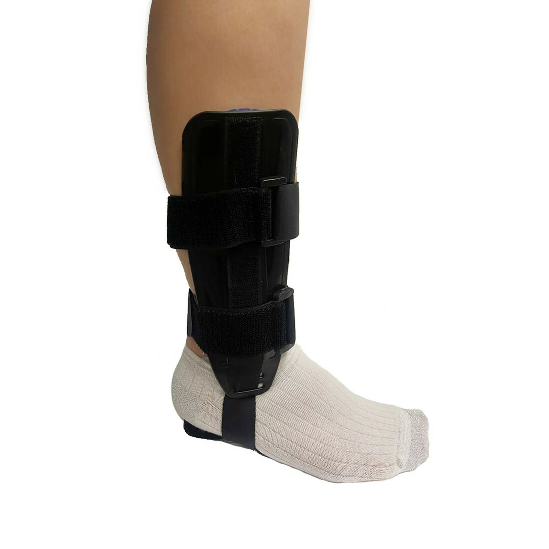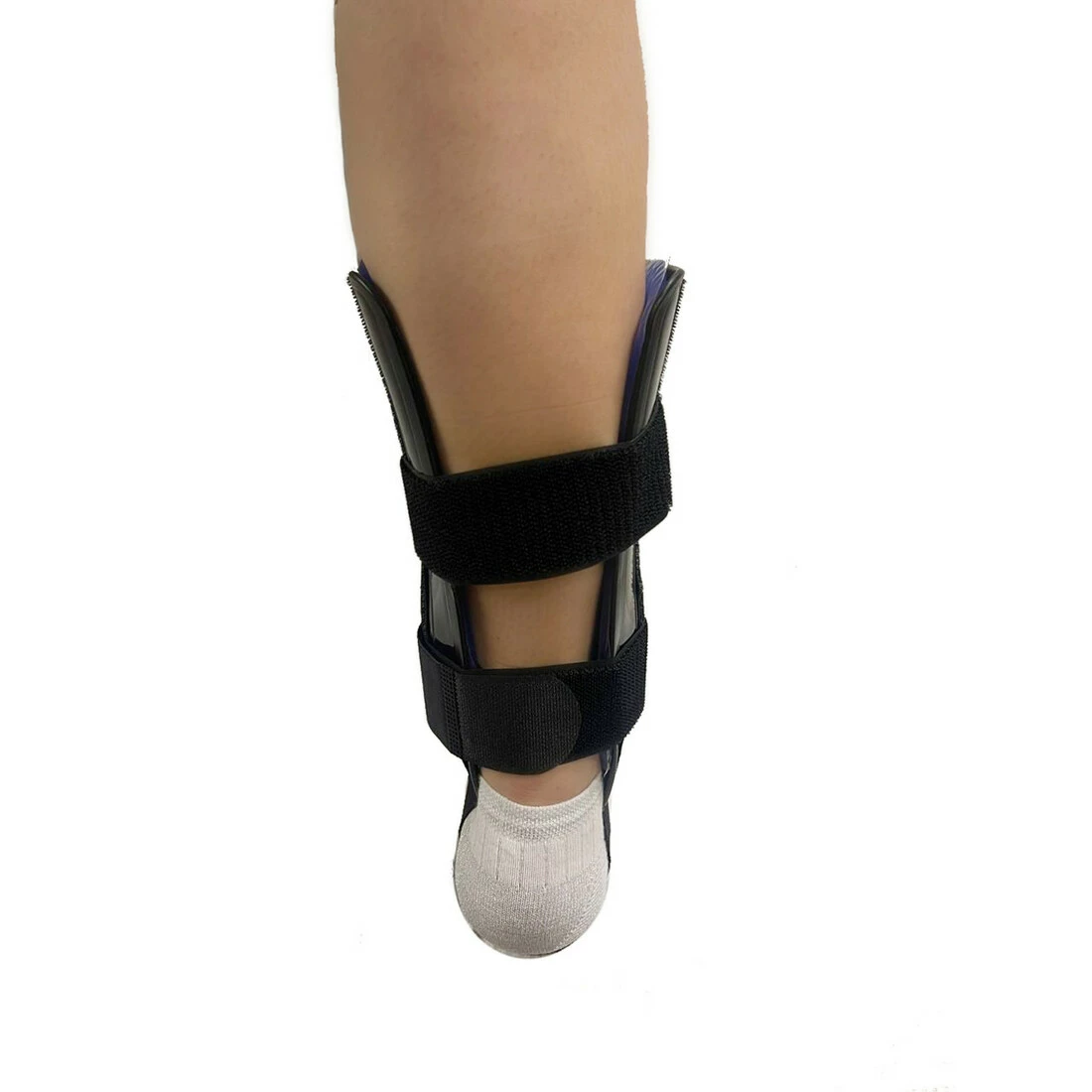 Ортез состоит из двух анатомических пластиковых пластин, соединенных нижней лентой. Эта лента регулируется по длине, поэтому вы можете точно подогнать изделие. Для стабилизации продукта использовались две ленты: верхняя и нижняя круговая ленты снабжены пряжкой, которая увеличивает возможность надежной фиксации изделия на конечности.