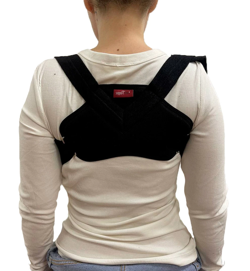 Бандаж SL-04 выполнен в виде неэластичных ключичных лент, соединенных с дорсальной опорой.