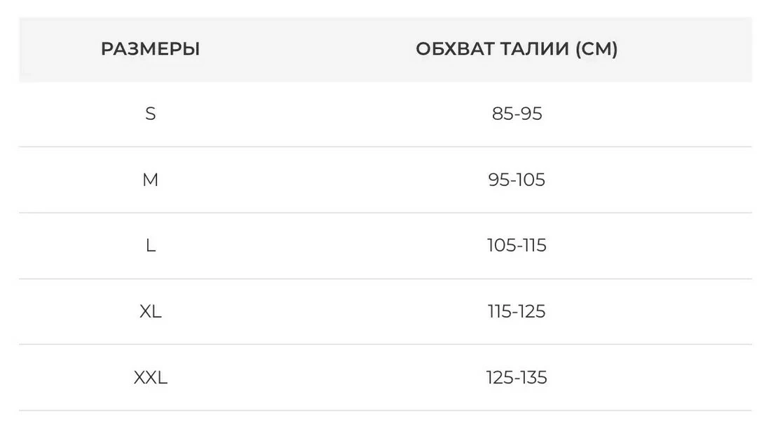 РАЗМЕРЫ ОБХВАТ ТАЛИИ (CM)