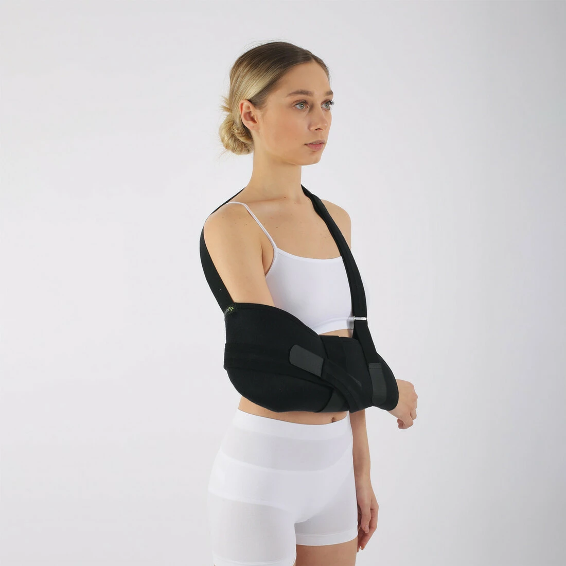 Бандаж обеспечивает иммобилизацию и поддержку верхней конечности.