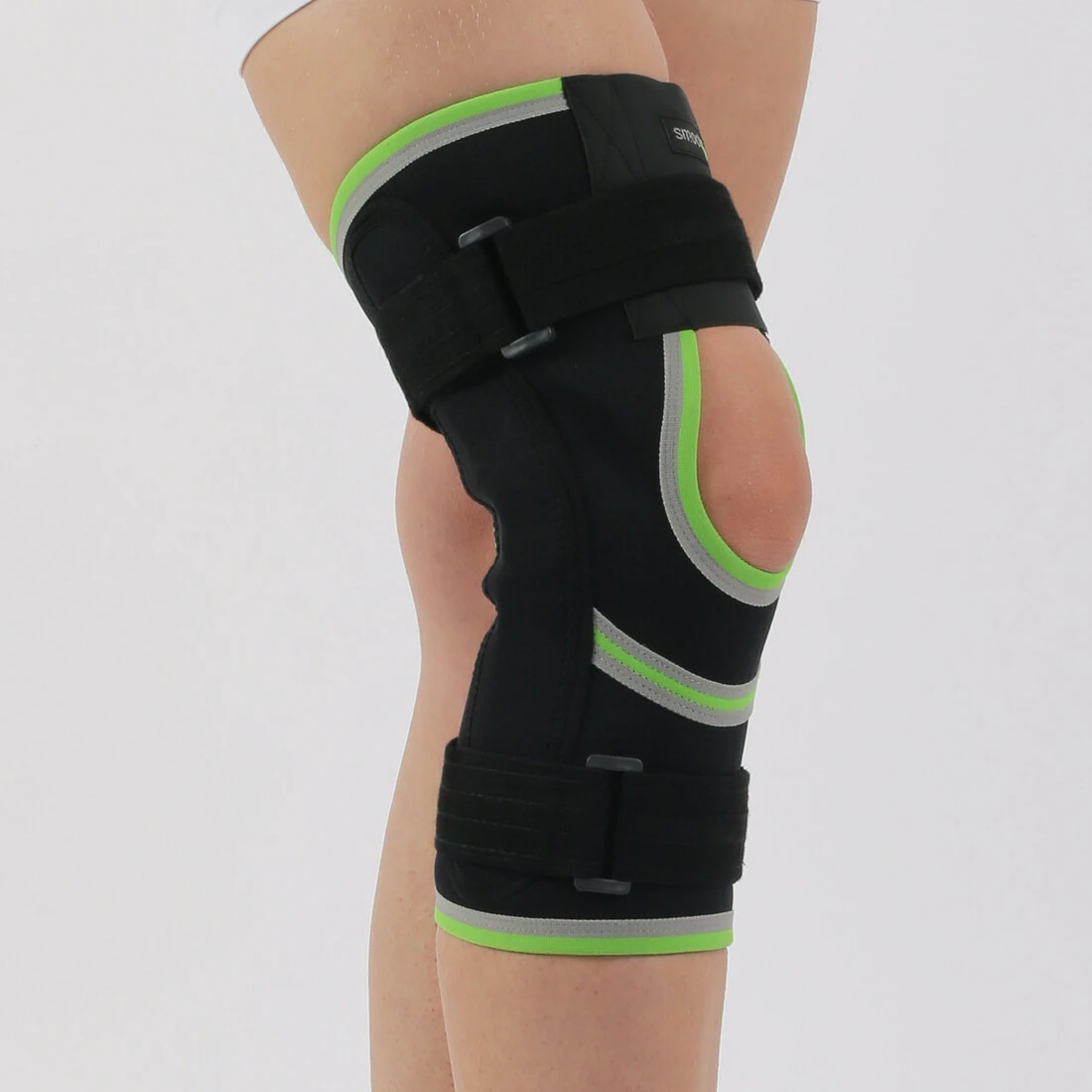 Неопреновая ткань толщиной 3 мм обеспечивает прочную поддержку и способствует гибкости, терапевтическое тепло, успокаивающее боль в суставах. Стальные шарниры с обеих сторон обеспечивают максимальную поддержку, позволяют контролировать движения и предотвращают чрезмерное растяжение колена. Верхние и нижние съемные опоясывающие ремни с застежками-липучками поддерживают колено в правильном положении и желаемой герметичности.