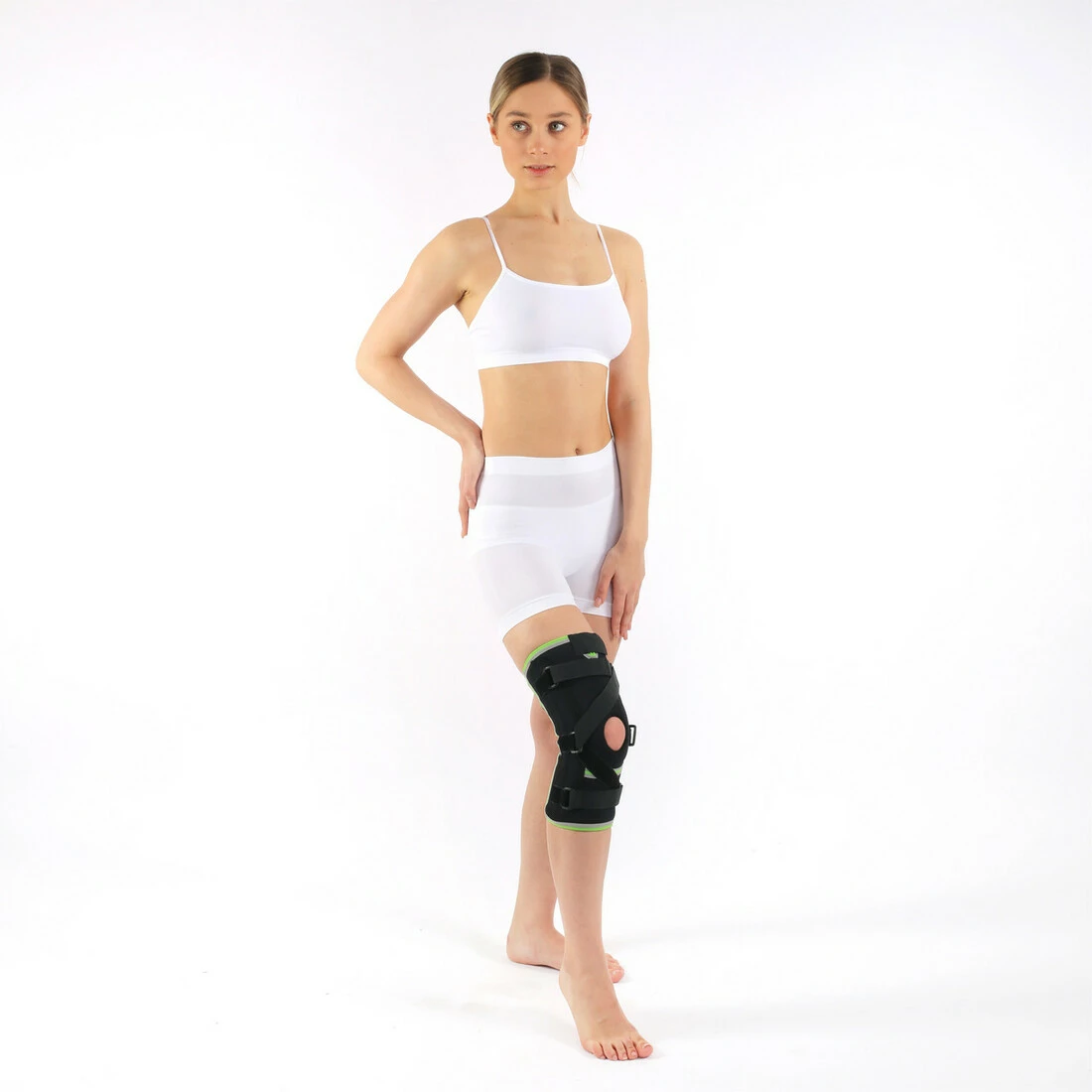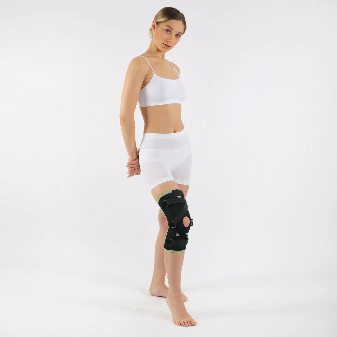 Боковые пружины из нержавеющей стали обеспечивают идеальную поддержку боковых связок, улучшают стабилизацию и снижают давление на колено. Открытый надколенник с силиконовой вставкой оставляет надколенник без давления, перекрещивающиеся лямки, прилегающие по 3-х точечному принципу, обеспечивают стабилизацию передней крестообразной связки, а застежки на липучке обеспечивают стабилизацию в правильном положении и желаемую герметичность. Подходит как для левого, так и для правого колена. Уменьшает боль, снимая нагрузку на сустав.