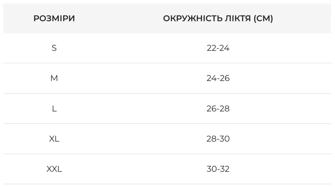 РАЗМЕРЫ ОКРУЖНОСТЬ ЛОКТЯ (CM)