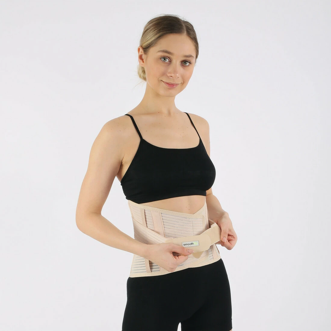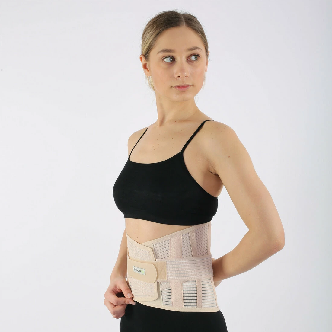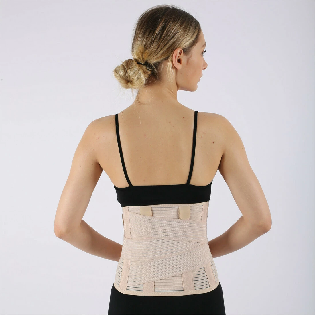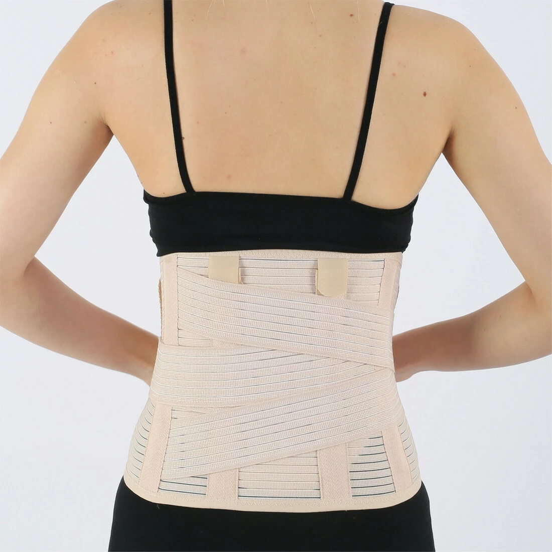 Стабилизирующий и иммобилизирующий корсет с натяжными ремнями изготовлен из эластичной компрессионной ткани, застегивающейся спереди на липучки. Имеет 6-ть ребер жесткости на обеих частях позвоночника два пластиковых и два стальных ребра, по бокам два пластмассовых, а также систему ремней, позволяющих регулировать усилие стабилизации.