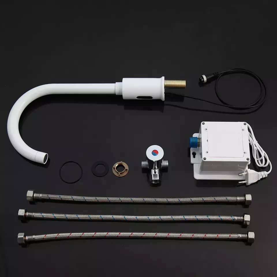 Бесконтактный сенсорный смеситель для раковины в ванную, латунный смеситель дизайнерский с датчиком Белый