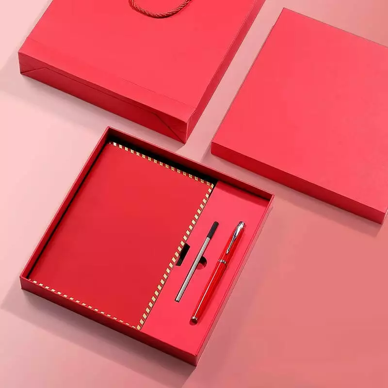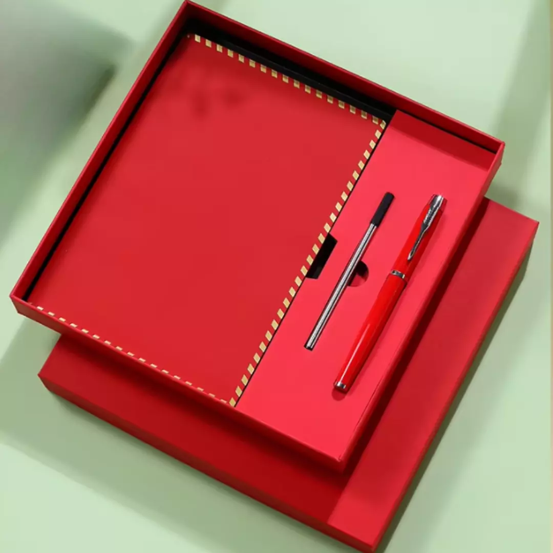 Блокнот А5 на 200 листов с ручкой скетчбук из эко-кожи в подарочной упаковке,набор 3в1, цвет красный