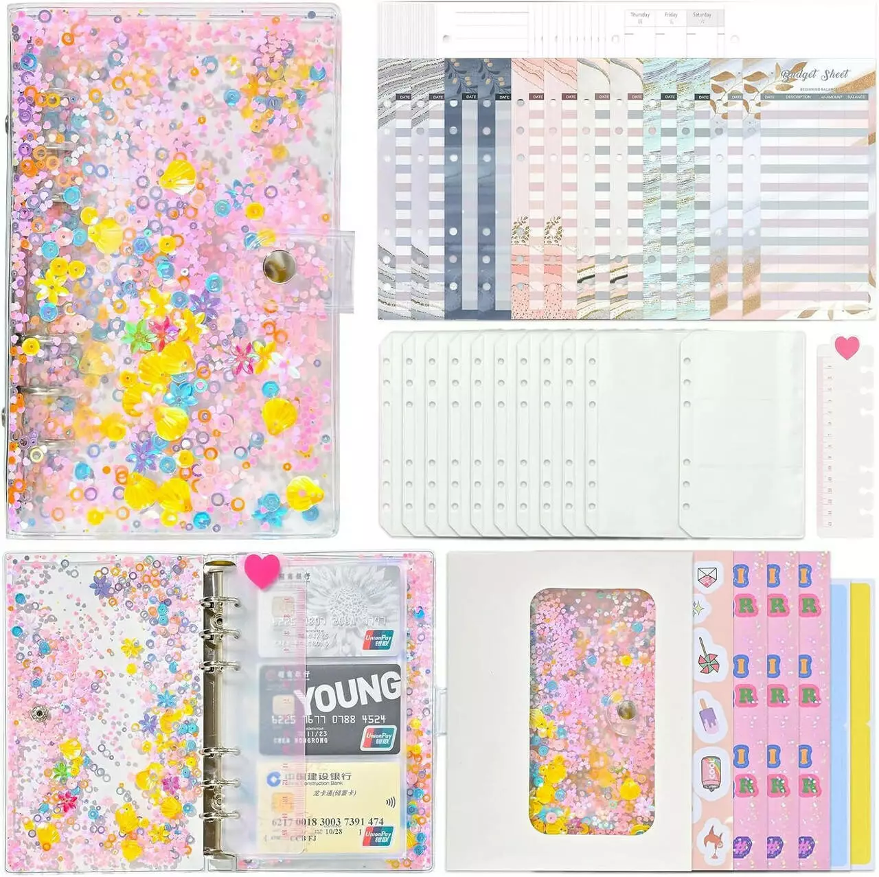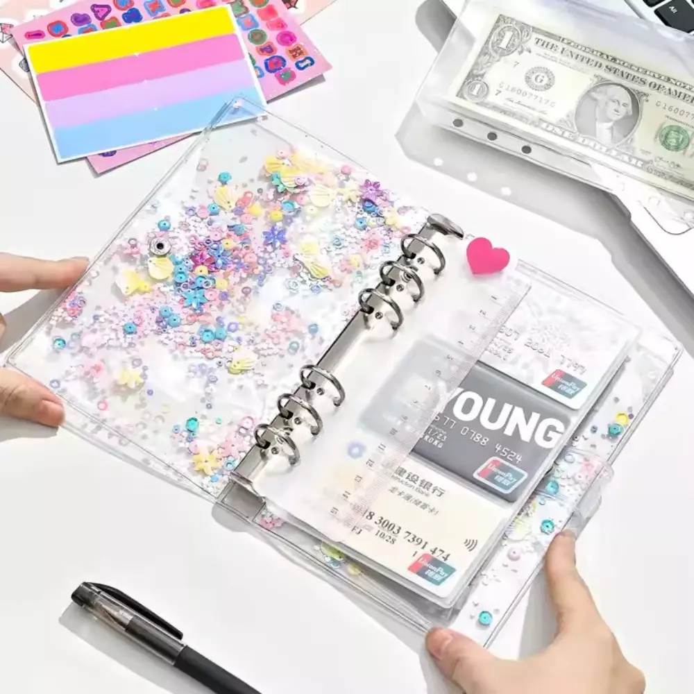 Планер для бюджета в формате A6 с прозрачной обложкой с блестками —