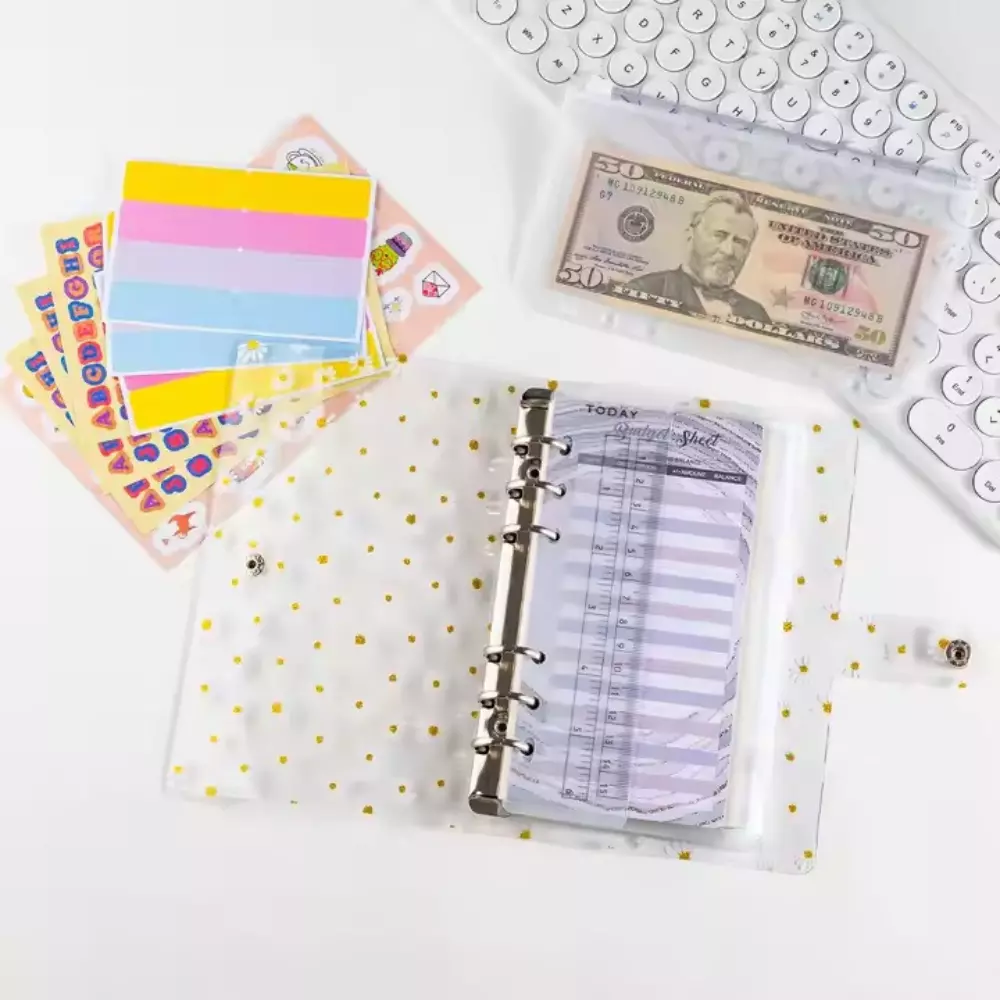 Блокнот-планер для финансов формат А6,планер бюджета и хранения денег,органайзер прозрачный с ромашками