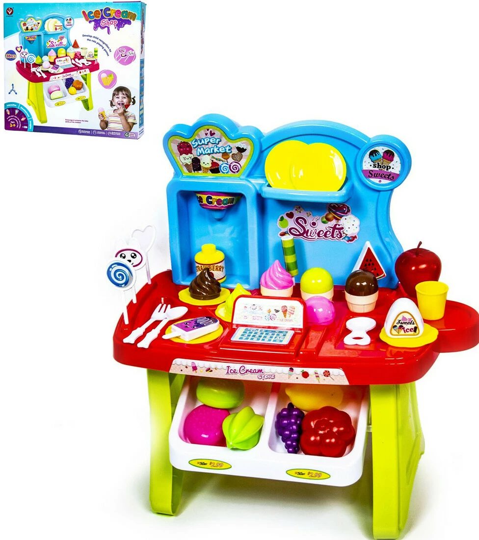Детский прилавок сладостей содержит 38 деталей, каждая деталь выполнена в ярких и сочных красках.