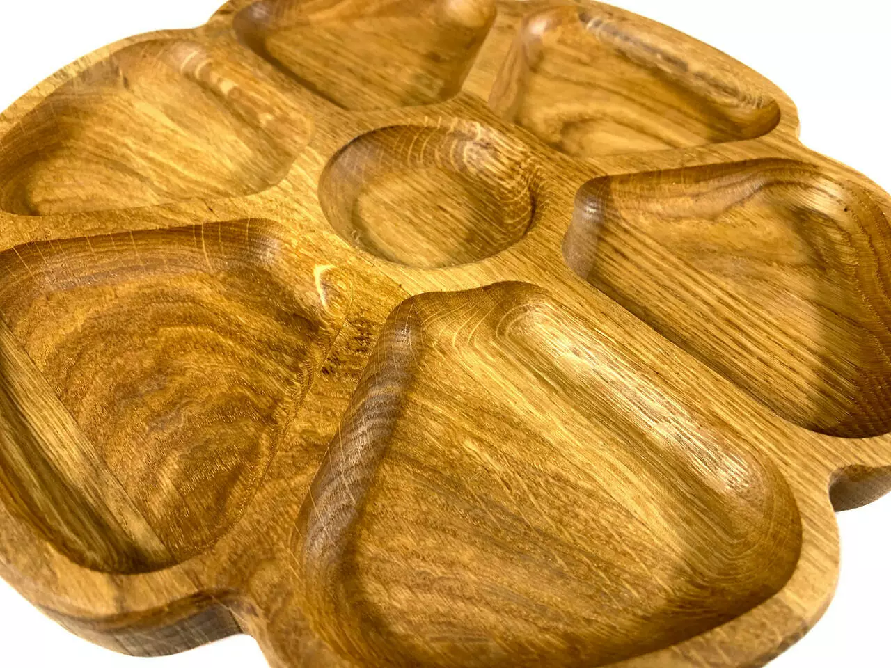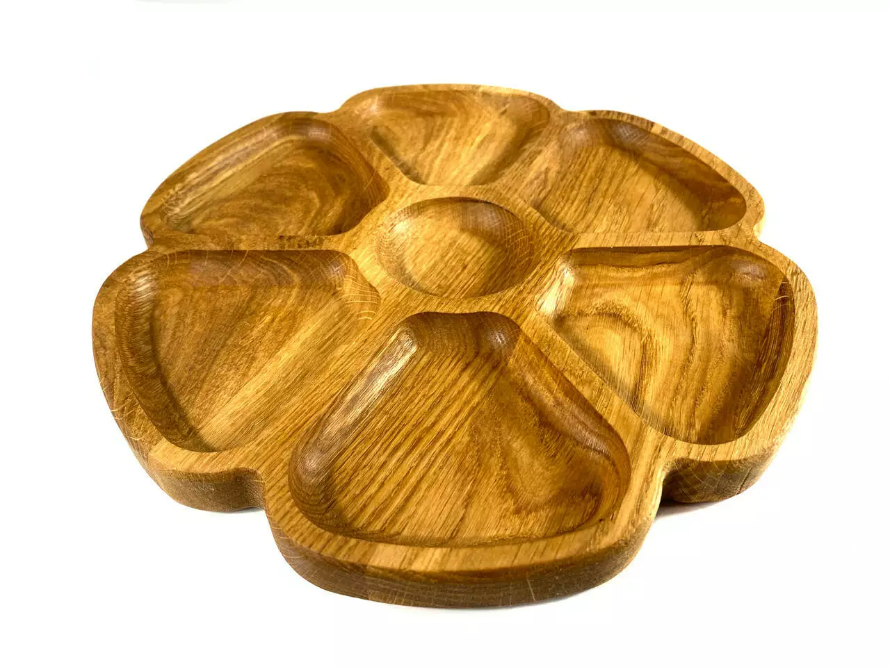 Каждая тарелка изготовлена из цельного дерева толщиной 2 см и вырезана с разнообразными емкостями, идеальными для подачи разнообразных закусок. От вкусных фруктов до аппетитных орехов, они будут выглядеть очень привлекательно на наших тарелках.