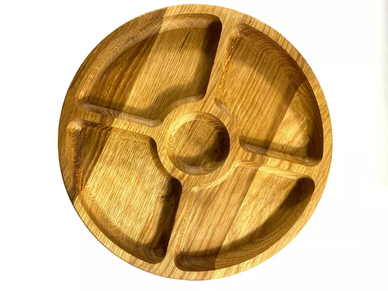 Каждая тарелка изготовлена из цельного дерева толщиной 2 см и вырезана с разнообразными емкостями, идеальными для подачи разнообразных закусок. От вкусных фруктов до аппетитных орехов, они будут выглядеть очень привлекательно на наших тарелках.