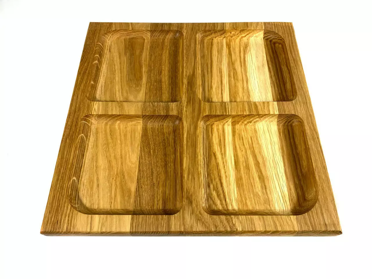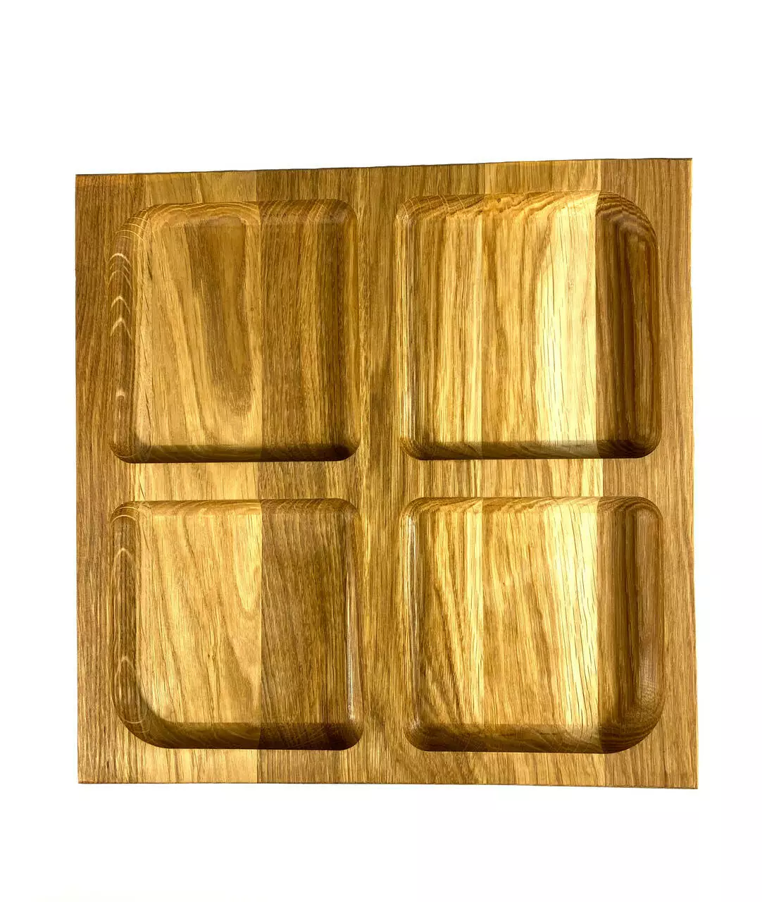 Каждая тарелка изготовлена из цельного дерева толщиной 2 см и вырезана с разнообразными емкостями, идеальными для подачи разнообразных закусок. От вкусных фруктов до аппетитных орехов, они будут выглядеть очень привлекательно на наших тарелках.