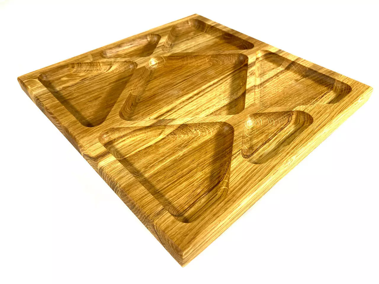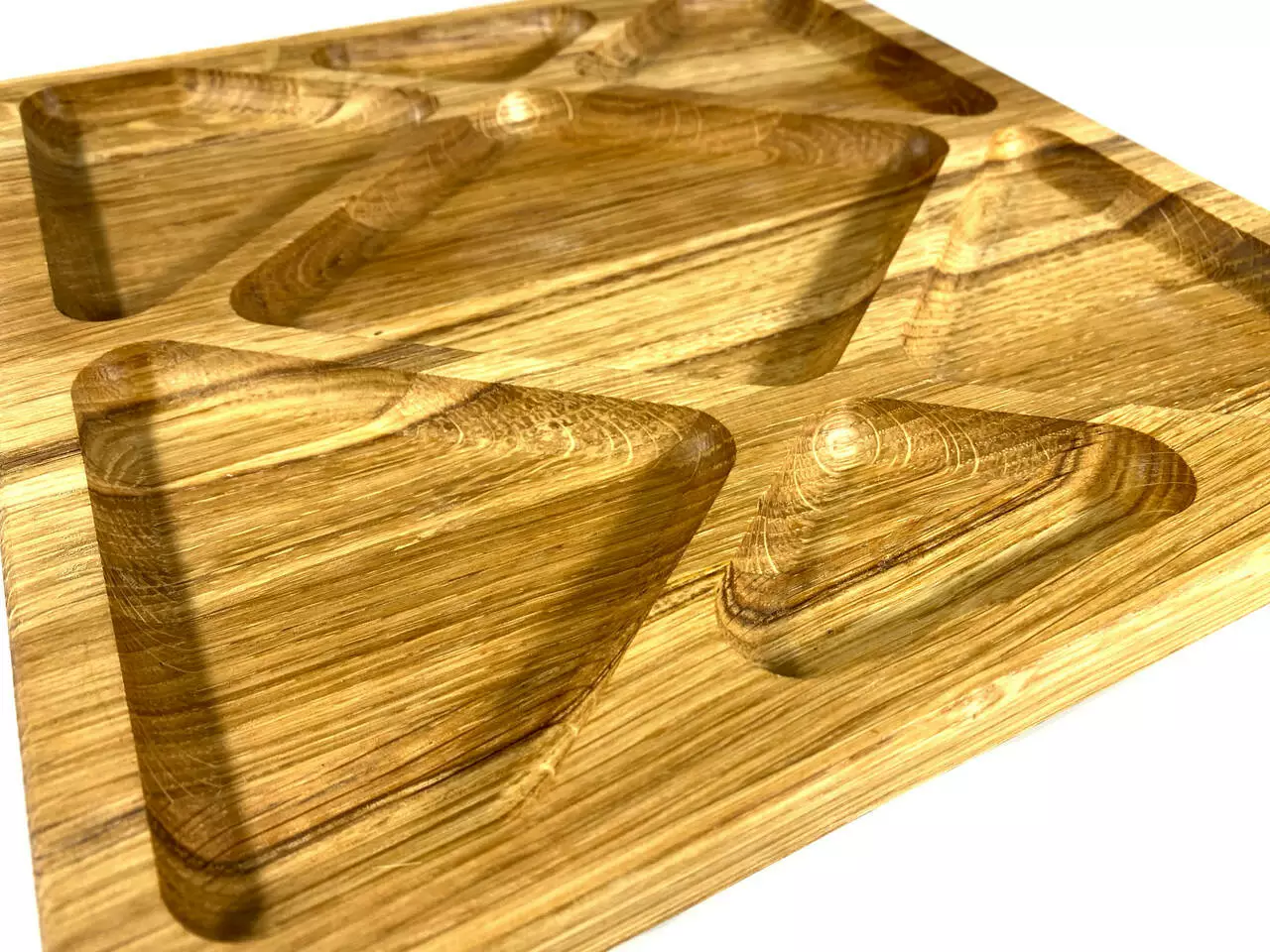 Каждая тарелка изготовлена из цельного дерева толщиной 2 см и вырезана с разнообразными емкостями, идеальными для подачи разнообразных закусок. От вкусных фруктов до аппетитных орехов, они будут выглядеть очень привлекательно на наших тарелках.