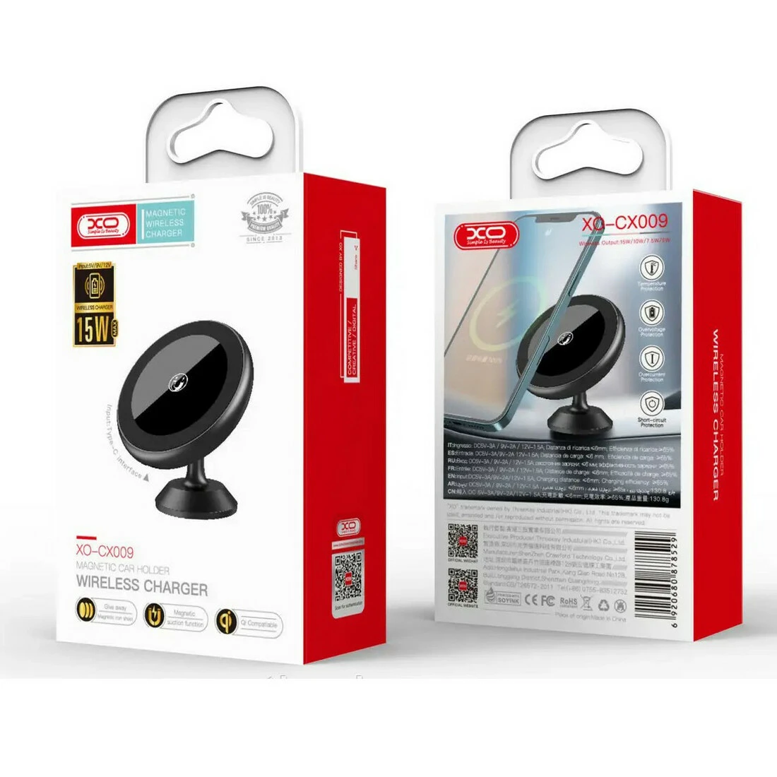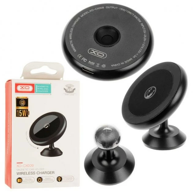 Держатель автомобильный магнитный с функцией беспроводной зарядки XO CX009 15W Черный