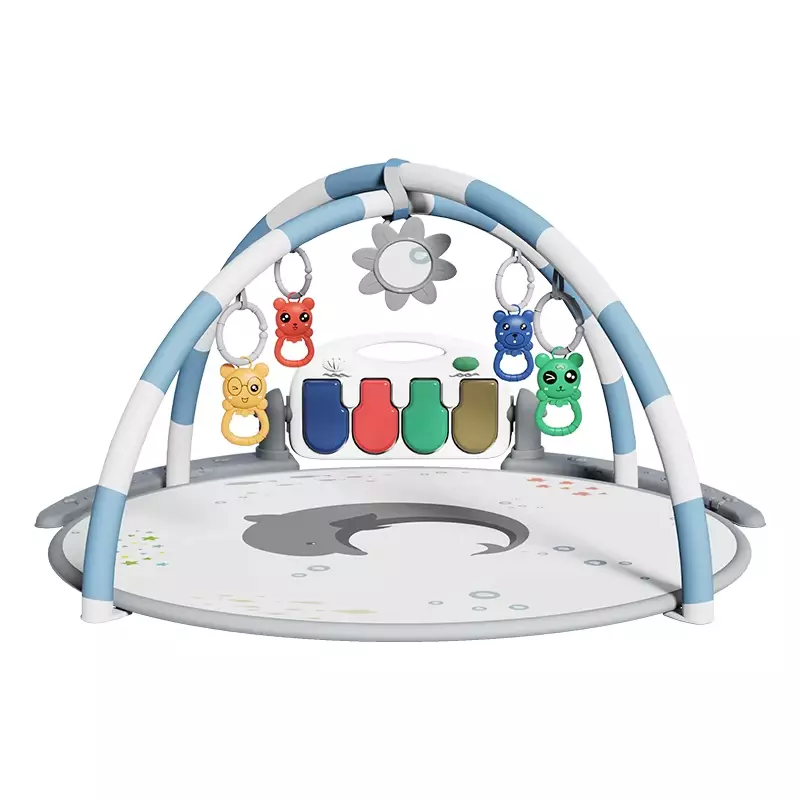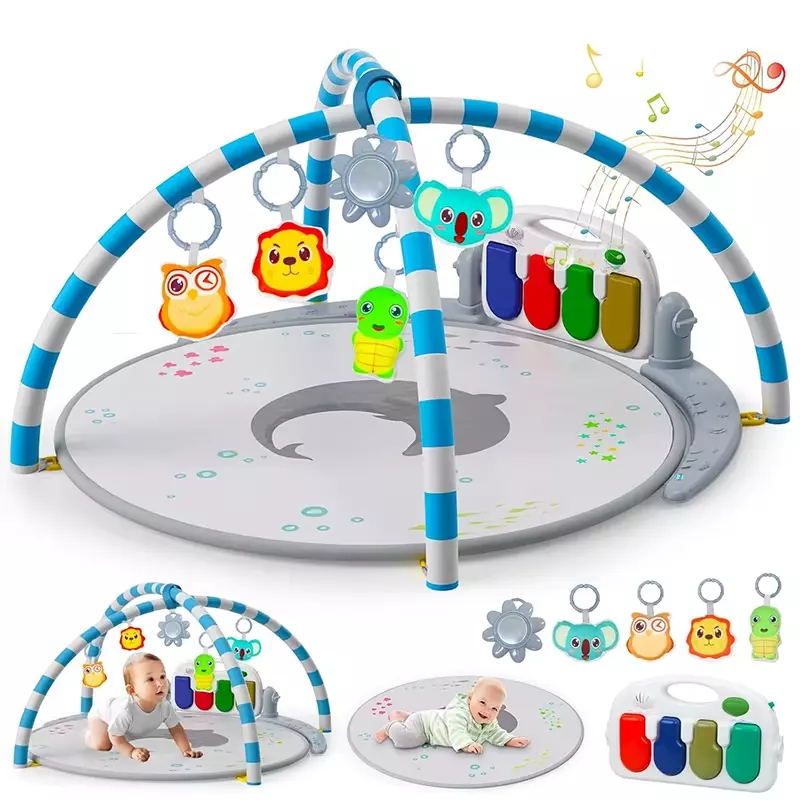 Детский игровой коврик с пианино, подвесными игрушками, развивающий коврик в сером цвете