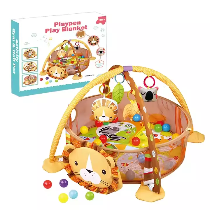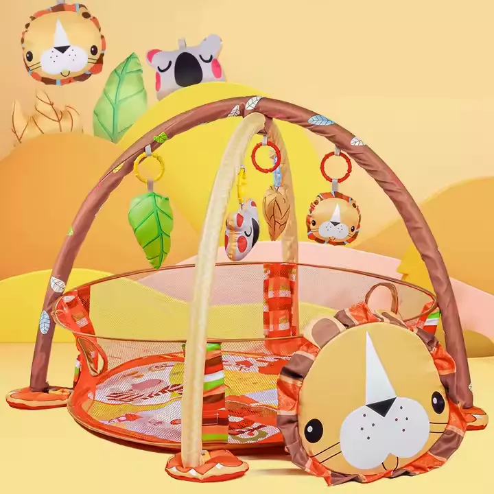 Детский коврик-манеж с дугами, игрушками и шариками, яркий развивающий коврик, модель Лев