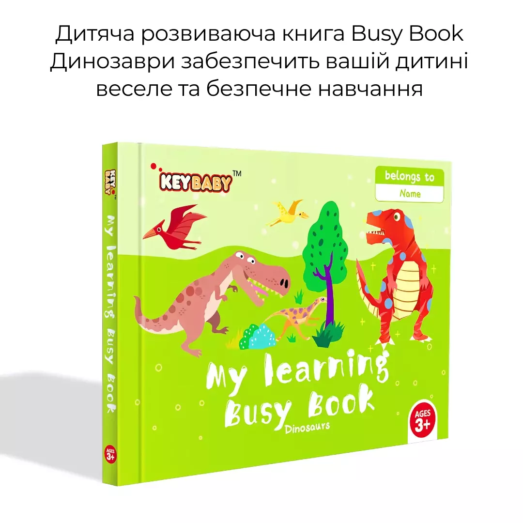 Дитяча розвиваюча книга Busy Book Монтессори,тактильная книга с липучками Keybaby для детей, бизибук, Dinosaur