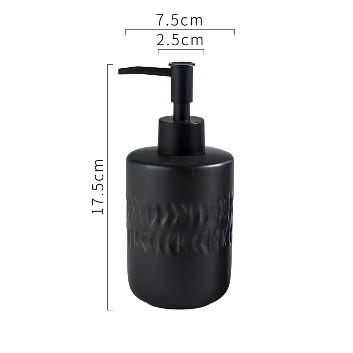 Изготовленный из керамики, дозатор имеет прочную и долговечную конструкцию. Компактные размеры (17,5 см в высоту и 7,5 см в диаметре) позволяют легко разместить его на раковине или столешнице, не занимая много места. Удобный насос обеспечивает простое и точное дозирование мыла, что делает его отличным для повседневного использования.