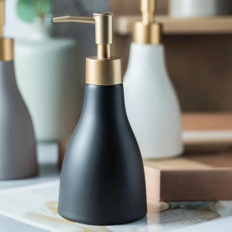 Дозатор для жидкого мыла, моющих средств для ванной комнаты и кухни Bathlux 280 мл из керамики, Черный матовый